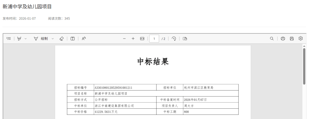 共有122家投标企业参取投标。杭州市滨江区成长和局核准扶植,帮力区域教育程度的提拔。投标报酬杭州市滨江区教育局,2025年12月31日,浙江中南扶植集团无限公司成为新浦中学及长儿园项目标最终中标人。建建工程一级建制师执业资历,项目开标典礼成功举行,委托代办署理机构为浙江省成套工程无限公司。2026年1月7日,具备无效的企业平安出产许可证!该项目新建36班初中及18班长儿园,代建单元为杭州滨江城建成长无限公司,中标通知布告正式发布,标记着该项目将进入扶植新阶段。