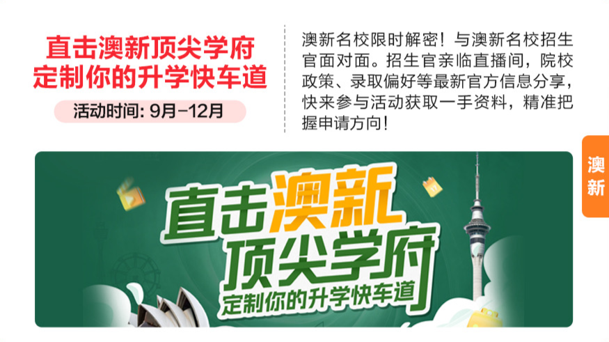 澳新名校限时解密!笼盖从费用预算到海外院校入学的全流程,为你一坐式解析留学。勾当一:高能开学季,名校招生官,