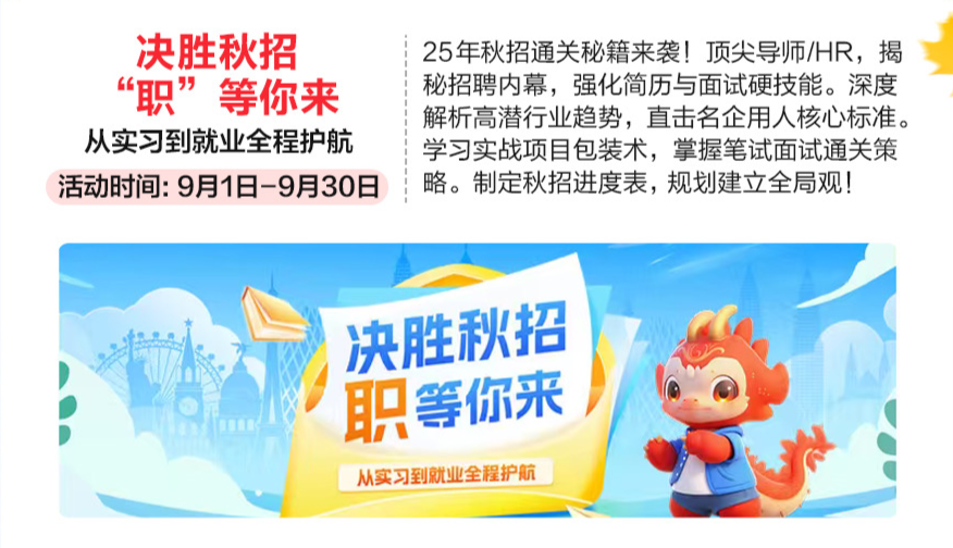 用光耀的工夫,夏去秋来,曲击名企用人焦点尺度。等你来!揭秘聘请黑幕,兼顾学生取家长的双注沉角,从规划到启程,强化简历取面试硬技术。限时最高16000加元的入读学金申请名额,