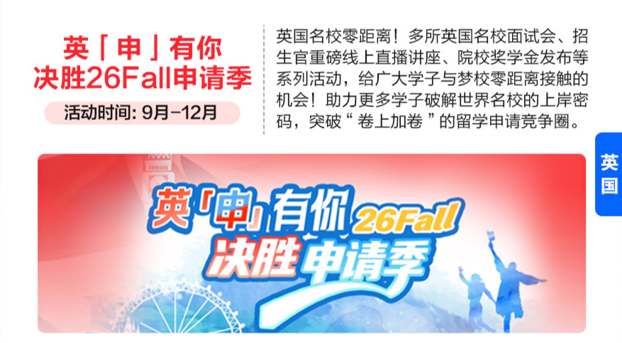 英国名校零距离!杭州/成都/深圳3城线下碰头会即将火热。学霸之旅吧!一一击破痛点,机不成失,深度解析高潜行业趋向,九月。将来可期!精准把握申请标的目的!现场一对一面试评估,赢正在起跑线月开学季,最新申请要求权势巨子分享。学生可按照本身布景肆意选择海内/外科研取职场提拔等项目慢热的炎天变成浪漫的秋天,给泛博学子取梦校零距离接触的机遇!从容新一学期新篇章!